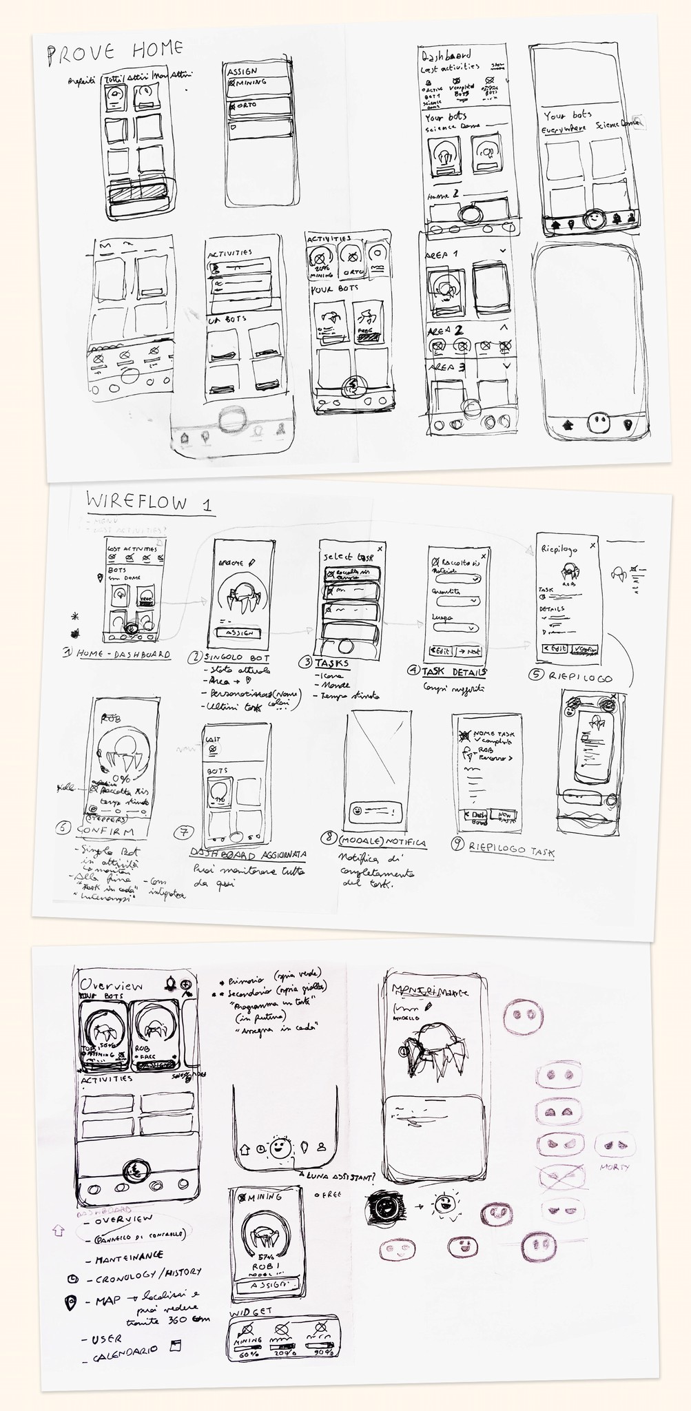 These early sketches helped define core logic and layout options, especially for the dashboard, which acts as the central hub for monitoring and assigning tasks.