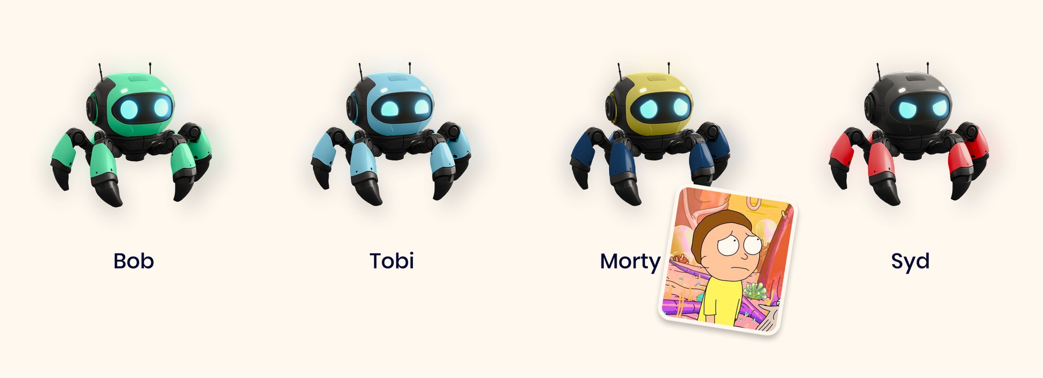 I designed them to be easily recognizable, each with their own color, name, and expression, so users could create a stronger bond and reduce friction in task assignment.