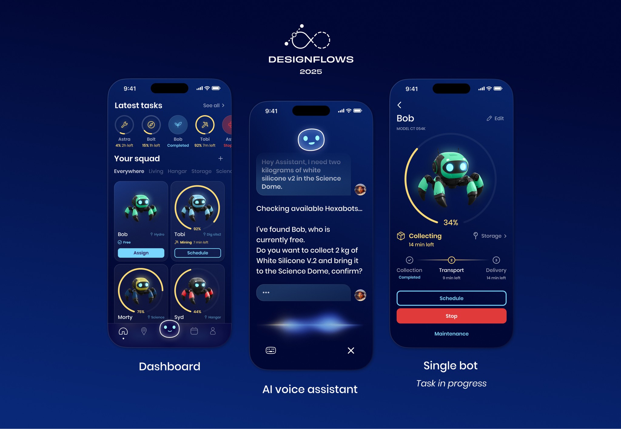 The result is a voice-first, bot-based experience built around task delegation and mission tracking, designed to work smoothly in a low-precision, high-stakes environment like the lunar surface.